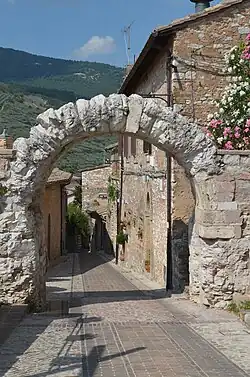 - Five other gates may still be seen as part of the city wall, built of rectangular blocks of Subasio limestone.[14] They include the Porta Venere, Porta dell'Arce, Porta Urbica