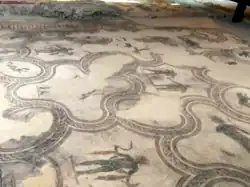 The villa[17] is one of the most important Roman sites in Umbria, even in Italy, with its spectacular mosaic floors of extraordinary technical quality in terms of design and colour rendering.
