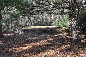 The Historic Village of the Narragansetts in Charlestown is an historic district in Charlestown, Rhode Island encompassing what were for nearly two centuries the reservation lands of the Narragansett people. The district covers 5,600 acres (23 km2) and is bounded by Route 112 on the east, U.S. Route 1 on the south, King's Factory Road (Bureau of Indian Affairs Route 411) on the west, and Route 91 on the north.[2] These lands served as the Narragansett reservation between 1709 and 1880, when the tribe sold the land to the state and was formally detribalized. Because of this long period of Native occupation, the area is archaeologically important, containing both historic and prehistoric artifacts.[3] The Narragansetts have since received federal recognition.