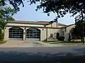 The former Station No. 16 in Ensley is an example of a mixed-use station in a suburban area. The station, which incorporates Spanish Revival elements, also served as the community's police station and jail. Two one-story wings on the street corner comprised the fire station, with a courtyard between the two. The garage wing features a terra cotta shed roof, and the office wing has three arched entrances on the façade. The two-story police station and jail has a parapet roof topped with terra cotta tiles and a stucco band. Six-over-six double-hung windows adorn both floors.[12] The current Fire Station No. 16 is at 2001 Avenue I, Ensley.