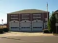 In contrast to many of the other historic stations, the Wylam Fire Station is built in a restrained commercial style of dark red brick. Built in 1910, when the town of Wylam was annexed into Birmingham, the station features large, wooden double garage doors with decorative metal hinges. Three six-over-six wood-frame windows sit over the door, with a stone panel above. The east and west sides of the building feature six windows on each floor, steel frame on the first and wood on the second.[17]