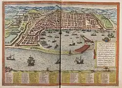 The maritime republics (Italian: repubbliche marinare), also called merchant republics (Italian: repubbliche mercantili), were Italian thalassocratic port cities which, starting from the Middle Ages, enjoyed political autonomy and economic prosperity brought about by their maritime activities. The term, coined during the 19th century, generally refers to four Italian cities, whose coats of arms have been shown since 1947 on the flags of the Italian Navy and the Italian Merchant Navy:[10] Amalfi, Genoa, Pisa, and Venice. In addition to the four best known cities, Ancona,[11][12] Gaeta,[13] Noli,[14][15][16] and, in Dalmatia, Ragusa, are also considered maritime republics; in certain historical periods, they had no secondary importance compared to some of the better known cities.