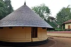 The Sreekrishna Temple: Now reduced to a minor shrine, to the west of the Shiva temple, this temple, on the shore of a reservoir, existed much before the Mahadeva temple. Its location is unique in that the mound over which the Shiva temple was built hides this shrine from the rising sun. Since the temple is below the level of the main temple it is also called Keezhthrikkovil (കീഴ് തൃക്കോവില്). The whole complex, though small, is a photographer's delight and has appeared in books on Indian temples. An independent temple, tantra-wise, it is regarded as a part of Shiva temple by the Devaswom Board for convenience of administration. The poojas are performed by a Brahmin family – Kuzhiyaanoor Illam – brought to Kaviyoor centuries ago exclusively for this temple from Kozhikode during the fiefdom of Pathillathu Brahmins.