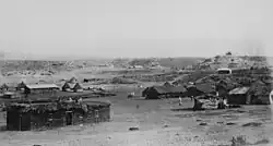 Italian troops took advantage of Alula's absence, the power vacuum left as a result of Emperor Yohannes’ death, and the havoc wreaked by three years of famine to take control of the city on August 3, 1889.[8] They built their fort on a hill in the village of Beit Mekae, forcing the inhabitants of this village to resettle nearby. At the time of General Baldisera’s arrival, the small town had 3000 inhabitants[8] and consisted of traditional mud huts, Agdos and Hidmos. Above all, the military fort at Beit Mekae was a strategic point when it came to controlling the local population; it also served as a military strongpoint from which local uprisings, which were largely directed against the government’s power of eminent domain, could be suppressed.[9] Eritrea officially became an Italian colony in 1890 and Massawa – already the seat of the colonial administration since 1885 – was declared the capital. At this time, because of the danger of insurrection in the highlands, Asmara was not considered to become the capital of the new colony. Furthermore, Bizzon explains, Asmara was not developed enough to serve as the capital: "Politically, militarily, and even logistically, the distance between Massawa and Asmara is greater than the distance between Italy and Massawa."[10] The lack of an infrastructural link to Massawa prevented Asmara from developing quickly.
