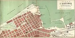 The expansion of Batumi began in 1883, with the construction of the Batumi-Tiflis-Baku railway completed in 1900 by the finishing of the Baku-Batumi pipeline. Henceforth Batumi became the chief Russian oil port in the Black Sea. The town expanded to an extraordinary extent and the population increased very rapidly: 8,671 inhabitants in 1882, and 12,000 in 1889. By 1902 the population was 16,000, with 1,000 of them oil refinery workers.[7]