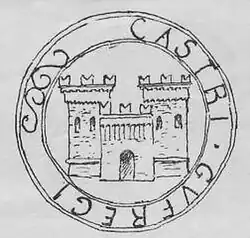 Castel Goffredo granted itself the status of a free commune when Brescia was unable to defend it.[74][75] Then, on September 20, 1337, the population preferred to place itself under the protection of Luigi I Gonzaga,[76] first captain of the people of Mantua, by public deed of the notary Giacomino Gandolfi.[77][note 7] Thus began the rule of the Gonzaga seigniory, destined to last until 1707.[78] The first vicar with civil and military powers was Ambrogio de Ferrari,[79] who resided in the Torrazzo, while the offices were located in the nearby palace.