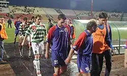 The 2012–13 season started with the triumph in the Hungarian Supercup against Debrecen, the champions of the 2011–12 season. Videoton defeated the Hajdús on penalties after a 1–1 draw at home.[22][23] On 29 July 2012 Videoton started the 2012–13 season of the Hungarian League with a 1–1 draw against Pápa. On the international turf, Videoton entered the second round of the UEFA Europa League 2012–13 season against the Slovak Slovan Bratislava. The first leg was played in Bratislava and ended in 1–1 draw.[24] The second leg ended with a goalless draw which resulted Videoton's qualification for the third round.[25] In the first leg of the third round Videoton beat the Belgian KAA Gent 1–0 at the Sóstói Stadion.[26] The only goal was scored by Nikolić in the 78th minute. The second leg was won by 3–0 by Videoton at the Jules Ottenstadion.[27] The goals were scored by Oliveira and Nikolić (2). At the play-off stage of the Europa League 2012–13 Videoton played the first leg against the Turkish Trabzonspor at the Hüseyin Avni Aker Stadium. The match finished with a goalless draw.[28] On 30 August 2012 Videoton received Trabzonspor, the result was a goalless draw after extra time and the penalty shootout was won by Videoton 4–2. Videoton thus reached the group stages of the UEFA Europa League 2012–13.[29] On 20 September Videoton played their first Europa League group match against KRC Genk at the Cristal Arena in Genk, Belgium. Videoton's inexperience at the European level was ruthlessly exploited by Genk and the Belgian club won the match by 3–0.[30] On 4 September 2012 (the 2nd matchday) Videoton hosted the Portuguese Sporting CP in the Europa League, which was very exciting due to the fact that Videoton have Portuguese a manager as Sousa and former Sporting players such as Caneira and Renato Neto. In the first half Vinícius, Oliveira and Nikolić scored and after a goalless second half the team celebrated one of the biggest triumphs in Videoton's modern history.[31] On 25 October 2012 Videoton defeated FC Basel 2–1 at home therefore they extended their unbeaten European run in Székesfehérvár to nine matches.[32][33] On 28 October Videoton beat reigning Hungarian League champions Debrecen 3–1 at home.[34] On 8 November Basel beat Videoton at the St. Jakob-Park, Basel, Switzerland.[35] The only goal was scored in the 80th minute by Streller. On 22 November Videoton hosted KRC Genk and lost to the Belgian club by a goal in the 19th minute by Barda.[36] The last group match was due to be played on 6 December, however due to heavy rain it was postponed and played the day after on 7 December. At the Estádio José Alvalade, Lisbon, Portugal, Sousa's team lost to 2–1 to Sporting CP, Sporting took the lead in the 65th minute by a goal from Labyad which was equalized by Sándor in the 80th minute. However, just after 2 minutes Sporting took the lead again by a goal from Viola. The final result meant that Videoton was eliminated from the 2012–13 season of the Europa League. All in all, Videoton could gain 6 points in 6 matches.