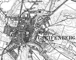 The cultural life gained momentum through the emergence of associations formed there. In the mid-19th century, the first Gryfice newspapers appeared. In 1843, the Greifenberger Kreisdrucken (published three times a week), in 1867, the Greifenberger Zeitung, and in 1869, the Greifenberger Kreis-Blatt.[89] During the Springtime of Nations, the city and the region seethed with revolutionary events. Alongside the activities of reactionary elements in the Gryfice County, there were also factors supporting the revolution. Economic slogans were raised, and demonstrations were organized to support them. Under Prussian rule, the city descended into the role of a small provincial center. Agricultural economy in the vicinity of Gryfice was also neglected.[90]