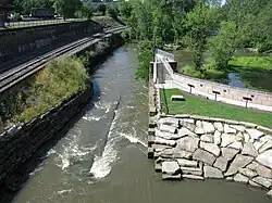 In 2003, the old arch dam was bypassed to meet water quality standards set by the Ohio Environmental Protection Agency. To preserve the historic dam, a small park was built behind the dam and the river was rerouted through the old canal lock. During warm-weather months, water is pumped over the dam. The park, known as Heritage Park, was formally dedicated in May 2005.[15]