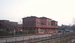 In the era leading up to the American Civil War, Franklin Mills was an active stop on the Underground Railroad, giving fugitive slaves shelter on their escape to Canada. Notable stops in Franklin Mills included the Cuyahoga House at the northwest corner of Cuyahoga Street and North Mantua Street (torn down in 1907), the Woodard Tavern[16] at the southwest corner of Fairchild Avenue and North Mantua Street,[17] and the Woodard house along Fairchild Avenue, which still stands today.[18] During this period, in 1835, noted American abolitionist John Brown moved to the village, operating a tannery along the Cuyahoga River with Zenas Kent, leaving in 1839. Today, a park is on the site of the tannery, which was torn down in 1976 as part of an environmental reclamation project of the areas around the Cuyahoga River.[19] On June 26, 2004, an historical marker was dedicated in downtown Kent commemorating the city's role in the Underground Railroad.[20]