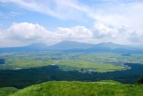 At the same time, Kyūshū experienced volcanic activity at Mount Aso, Aira Caldera in Kagoshima Prefecture and Kikai Caldera. There were four large series of Mount Aso volcanic eruptions, with structural changes. The last one was about 90,000 years ago. The lava produced stone materials that would later be used for bridge construction in the Prefecture.