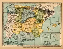 The Middle Ages was a time of great transformation in the Iberian Peninsula, with the replacement of Roman rule by a Visigothic Kingdom, which in turn was almost totally destroyed during the Muslim invasions.[22] This was followed by a long period of conflict in which the peninsula was fully reconquered by the forces of Christendom, with the formation of several independent kingdoms on the newly conquered land, divided by a mesh of small domains.[22] One of these was the County of Portugal, which was the genesis of the nation of Portugal.[22] All these phases were intensively reflected in the Algarve, a region that due to its geographical situation was one of the first to be hit by the Muslim invasion,[23] and simultaneously the last to be reconquered in the Portuguese territory.[24]