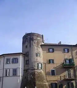 Throughout all these military upheavals, the circle of walls would be rearranged, enriched by a moat -in 1269 the Cistercian monks of the convent of Santa Maria ad Nives of Palazzolo turned out to be landowners in Marino in the locality of "Boccafossati."[39]- and enlarged, towards the east with the so-called "New Chambers" and with the opening of a new gate towards Rome and towards Grottaferrata, Porta Giordana -probably so named in honor of the feudatory Giordano Orsini-.[37] Moreover, downstream from the Coste district, along the course of the Marana delle Pietrare near the peperino quarries, the tower of Ammonte was built,[37] which could not be ruled out as part of a larger defensive system downstream, as hypothesized by the scholar Giuseppe Tomassetti.[40]