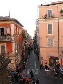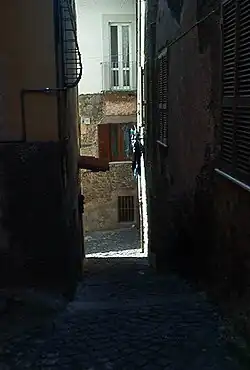 On July 14, 1837 at a meeting of the town council a decision was made to prohibit the transit, by means of a chain stretched in the middle of the road, of wagons coming from Rocca di Papa along the present-day via di Capo d'Acqua, between the localities of San Rocco and Capo Croce.[97] This resolution was made following the observation that the road had been much ruined by the continuous transit of heavy wagons coming mostly from neighboring Rocca di Papa.