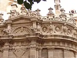 Due to the Ecclesiastical confiscations of Mendizábal, numerous convents and monasteries in the city were secularized leading to a number of today's public buildings and squares such as the Museo de Bellas Artes de Murcia and the Plaza de Santa Isabel.[53][54] The period also saw the demolition of the remains of the city walls and the establishment of a short lived university.[55]