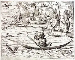 The written historical accounts of Nunavut begin in 1576, with an account by English explorer, Martin Frobisher.[9] Frobisher, while leading an expedition to find the Northwest Passage, thought he had discovered gold ore around the body of water now known as Frobisher Bay on the coast of Baffin Island.[10] While the ore turned out worthless, Frobisher made the first recorded European contact with the Inuit. Other explorers in search of the elusive Northwest Passage followed in the 17th century, including Henry Hudson, William Baffin and Robert Bylot. Despite these explorations, these events ultimately had no significant impact on the Nunavut and its peoples.[9]
