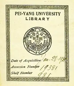 - ^ 张昉、王莉、张泽英 (2007-11-15). ""北洋大学堂"若干史实百年新考". 天津大学学报(社会科学版). 2007 (6).