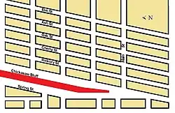 - ^ Map adapted from material by: Magness, Perre (September 15, 1988), Randolph dominated early river towns, Commercial Appeal, Memphis, Tennessee, History column, p. N2. (Map is not to scale, but showing approximate alignment of streets in ca. 1835. North is to the left.)
