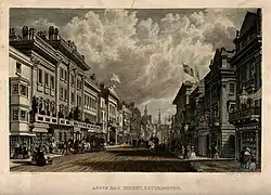The fashionable attractions of the town caused coaching traffic to increase.[44] Several coaching inns were established in Southampton,[44] including the Dolphin Hotel and the Star Hotel, and there was a great deal of competition for passengers and guests.[44] The coaching trade continued until it was rendered obsolete by the arrival of the railway.[45]