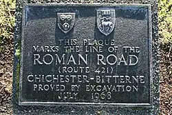 But the fact that there was a Roman settlement at what is now Bitterne Manor is not disputed.[2] Archaeological finds at what is believed to be Clausentum show the site to have been an important trading port with some significant buildings.[2] Traces of a Roman Road on a line running from Bitterne Manor to Wickham have also been found.[2] Elsewhere possible evidence of Roman-era farming was found on the site of what is now St Mary's Stadium.[8]