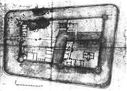 At the northeastern corner of the cathedral a palace (Pfalz) was added for the bishop and visiting royalty, completed around 1044/45. It had become a custom in Carolingian times that bishops expanded their residences in order to host kings or emperors on tour. The palace was 74 metres long, 16 metres wide and had three floors with heights of 6 metres each. It had its own chapel and was linked to the northeastern corner of the cathedral. The dimensions and elaborate architectural design were exceptional for profane buildings in the Salian era.[12] A cloister and a number of buildings for the chapter and church administration were added on the southern side of the cathedral. Altogether, cathedral and additions presented a representative assembly of stately buildings with nothing comparable in the Salian empire.[12]