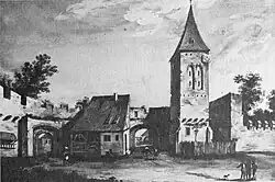 In the beginning of the following century, another expansion of the town became necessary. Between 1200 and 1230, the staple market at the Speyerbach (today Fishmarket Square) was included within the city walls.[20] The foundation of new parish churches such as St. Bartholomew, St. Jacob and St. Peter is an indication of a growing population. As of the end of the 11th century, Spira became the only name used for the town. Until then, “civitas Spira vel Nemeta” or just “Nemetum” was used in documents.