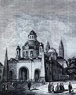 From 1854 to 1856, the baroque westwork of the cathedral was dismantled and replaced by a westwork in the original Romanesque style including the two former western towers. Pre-Christian Roman headstones that were unearthed during the works were brought to the museum.