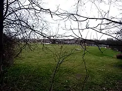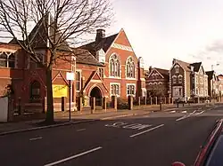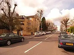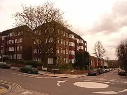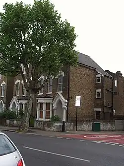 While strictly speaking not properly part of Stroud Green, Womersely House, close by the St Peter-in-Chains catholic church, has already been noted as home to the Turner family, prominent local landowners in the late 19th century, who had previously occupied Stapleton Hall. By the early 20th century however it was a hostel for single working women.[47] It occupied a plot of land bordered by Elm Grove and Womersley Road, and had been demolished by 1947 as can be seen on various RAF aerial survey photos on the Historic England website.[29] The site is currently (March 2008) being re-developed.