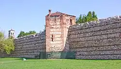 These walls, as in other similar cities, were erected to delineate urban from rural space and to confer prestige to the new status of a Roman city,[19] at a time when the entire region was pacified and defenses seemed unnecessary: from the victory over the Cimbri in the 2nd century BC until the 2nd century AD, Veneto saw no further barbarian incursions.[15] In the absence of significant remains, it is presumed that the walls were only partially constructed, particularly on the western side, while the city was naturally defended by rivers on the other sides.[20]