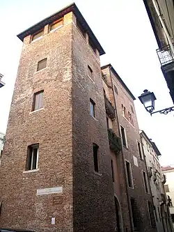 Unlike Verona and Padua, which were located at the crossroads of major trade routes and where merchants and artisans were the most prominent social groups at the rise of the medieval commune, Vicenza was dominated by rural lords. While maintaining their fiefs, these lords settled in the city to participate more easily in regional alliances and conflicts, building fortified houses and towers. Previously, their rural life relied on in-kind rents, but in the city, families required greater liquid wealth. Thus, the emerging and increasingly powerful middle class consisted of usurers, judges (Pilio,[53] Alberto, Losco, Pellegrino, Adamo), and notaries (Spinello, Bergullo).[41]