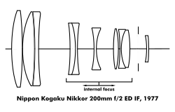 - ^ Sato, Haruo. "Press photographers' favorite lens that witnessed a number of world records: Tale 31: Ai Nikkor 200 mm f/2S IF-ED". Archived from the original on 2011-03-20. Retrieved 9 January 2008.