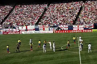 The Colombian team playing a friendly match against England in East Rutherford, New Jersey, United States (2005)