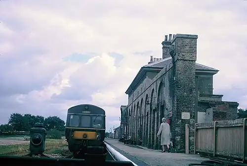 The entire East Suffolk line was listed for closure as part of the Beeching Plan of 1963. There was considerable local opposition, and on 29 June 1966 the Minister of Transport, Barbara Castle, announced that the East Suffolk main line would be retained, although the Aldeburgh line could close.[9][7]