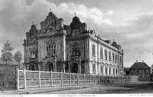 Starting from 1822, protected Jews were allowed to make a living from managing shelters and soup kitchens but were not allowed to engage in goldsmithing.[2] In 1842, the Jewish community in the city was officially established,[3] with 409 Jews registered in the city as official residents.[2] At the same time, a Jewish school was established in Riga under the management of Dr. Menachem Max Lilienthal, who was appointed to this position by the government. In 1843, the first synagogue in the city was established. The rabbi of the synagogue was Rabbi Aharon bar Elchanan, a student of the Volozhin Yeshiva. After his death, he was replaced by Rabbi Yaakov Rivlin.[3] Many Jews immigrated to the city under the rule of Alexander II for economic reasons. Alexander II was interested in developing the Baltic region commercially and industrially, allowed the immigration of many residents to it, and thus harmed the livelihood of the Jews (the immigrants created a lot of competition for the Jewish merchants and harmed their livelihood). Jews began to immigrate to Riga with certificates proving that they were merchants, craftsmen, and industrialists, and thus received permission to reside in the city.[3]
