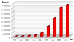 The coal and steel industries continue to expand, with the Ruhr reaching a position whereby its coal and steel production is in each case almost equivalent to the rest of continental Europe put together (excluding the USSR)[17]
