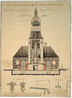 An early picture of St. Antony's Smeltery in (present-day) OberhausenFreiherr vom SteinCross-section of the steam engine erected at the Königsborn Saltworks in 1799 (drawing from 1822)