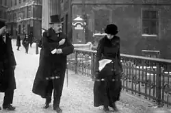 In 1905, he returned to politics as part of as a member of Christian Lundeberg's coalition government,[4] being the only member of the cabinet who had previously served in another cabinet.[14] In this cabinet he became Minister of Education and Ecclesiastical Affairs. In this position, he was one of the negotiators of the dissolution of the union between Sweden and Norway in Karlstad.[4] His term began on 2 August of that year.[5] Lundberg, who lead conservatives in the Riksdag, chose Hammarskjöld to discuss the legal aspects of the agreement with the Norwegians. Hammarskjöld resisted making concessions to the Norwegians, and they regarded him as the person most responsible for their failure to attain more favorable conditions for the dissolution.[15] The working relationship between the Swedish delegates was good, and Hammarskjöld was specifically pleased with his cooperation with the Liberal politician Karl Staaff.[5] His term ended on 7 November of that year.[5]
