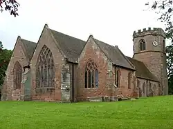 Baldwin de Hodenet built a motte and bailey castle in about 1082 possibly on a moated mound from earlier times. The timber castle was rebuilt in sandstone around 1196 but was burned down in 1264.[2] Hodnet Castle was mentioned in a document of 1223. Odo de Hodnet was granted the right to hold a weekly fair and an annual market by Henry III in the mid-13th century and the village grew to the north and east of the castle by the 12th-century church.[3]