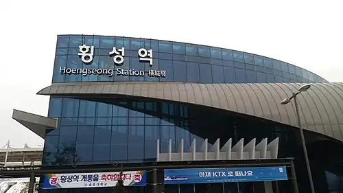 Hoengseong station is a railway station in Hoengseong-eup, Hoengseong, South Korea. It is served by the Gangneung Line. The station opened on 22 December 2017, ahead of the 2018 Winter Olympics.[1][2]