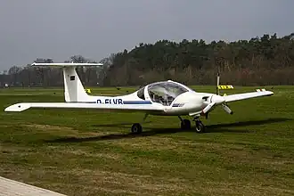 The Hoffmann H40 was a prototype sport aircraft built in Germany in 1988. Designed by Wolf Hoffmann based on his Dimona motor-glider, it was a conventional, low-wing monoplane with side-by-side seating for two and tricycle undercarriage. The aircraft's high aspect ratio wings and T-tail were carried over from its motorglider heritage, but the span was shorter than that of the Dimona. Construction throughout was of composite materials. Hoffmann intended this aircraft to compete with sporting two-seaters such as the Grob G 115 and Robin ATL, but was unable to find the financial backing to bring the aircraft to market, despite a 30% share bought in the project by German pump manufacturer ABS.