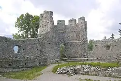 Hohenfreyberg Castle (German: Burg Hohenfreyberg), together with Eisenberg Castle directly opposite, forms a castle group in the southern Allgäu that is visible from a long way off. It is located about four kilometres north of Pfronten in the county of Ostallgäu. The late mediaeval hilltop castle was abandoned during the Thirty Years' War and set on fire. From 1995 to 2006 the former aristocratic seat was comprehensively made safe and conserved as part of a closely observed "example of renovation".