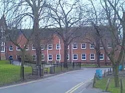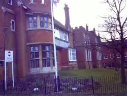 In 1920 the house became home to Chatham Grammar School for Boys, after which more buildings were built to accommodate students. After 1945 it became a specialist technical school (Chatham Technical School for Boys) and in 1982 it became a grammar school, Chatham Grammar School for Boys.[4] In 2016 the school name was changed in preparation for the planned admission of girls throughout the school. After a consultation with pupils, staff and parents the name "Holcombe Grammar School" was selected. The local authority is now using this name. During the late fifties, pre-fabricated buildings were erected in the grounds to serve as classrooms. These temporary buildings remained on the site for many years. In 2000, construction of the Performing Arts block was started. The last remnants of the sunken garden were destroyed, steps leading out from the Manor's library down to the garden were demolished and the area bricked over. Today the English and Science ("B" Block") stands on the site of the lake.
