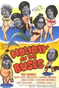 Holiday on the Buses is a 1973 British comedy film directed by Bryan Izzard and starring Reg Varney, Doris Hare, Michael Robbins, Anna Karen, Stephen Lewis and Bob Grant.[1] It was produced by Ronald Chesney and Ronald Wolfe for Hammer Films, and is the third and final spin-off film from the ITV sitcom On the Buses. It succeeded the films On the Buses (1971) and Mutiny on the Buses (1972)."[2] A fourth film was planned but cancelled.[3]