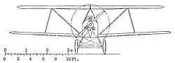 The Holland H.1 was a small, unequal span biplane with a lower wingspan 4% greater than the upper. Both wings were essentially rectangular in plan and built around pairs of spruce box-spars, with plywood leading edges and fabric covering elsewhere. They were braced together as a single bay structure by inward-leaning N-form interplane struts between the spars, strengthened by diagonal pairs of parallel struts from their tops to the lower wing root. Only the lower wings had dihedral and only they carried the H.1's narrow chord, unbalanced ailerons. The upper wing was held well above the fuselage by a pair of parallel, transverse, inverted V-struts and a strongly rearward-leaning upright V-strut from the forward fuselage.[2][3]