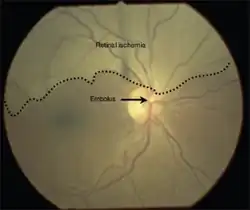 - ^ a b c d e f g h i j k l m n o p q r s t u v w x y z aa ab ac Riese, Nicole; Smart, Yelena; Bailey, Melissa (January 2023). "Asymptomatic retinal emboli and current practice guidelines: a review". Clinical & Experimental Optometry. 106 (1): 4–9. doi:10.1080/08164622.2022.2033600. ISSN 1444-0938. PMID 35109784.