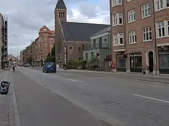 Nathanael's Church's was completed in 1899. Its architect is Thorvald Jørgensen who later designed the present Christiansborg Palace. The church took over Holmblad's villa which was expanded and adapted in 1988 and is now known as Nathanaels Sognegård. The oldest surviving building in the street is the low building from 1859 at No. 70.[4]