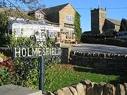 Holmesfield is a village and civil parish in the English county of Derbyshire. The population of the civil parish at the 2011 census was 971.[1] The name "Holmesfield" means "raised pasture-land" and is of Norse and Anglo-Saxon origin. Viking influences are also evident with many road names suffixed by "gate", the old Norse word for "way".
