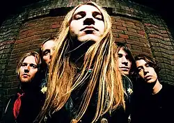 The metal band Holy Ghost Revival was founded on Bainbridge Island, Washington state[1] in 2001.[2] The band started when most of the members were still in high school.[3] According to frontman Conor Kiley, who graduated Bainbridge High School in 2001,[4] "We were just high school kids that played punk rock music, glam rock and other groovy sounds. We just got together and started doing it."[5] The name Holy Ghost Revival was taken from a shop sign in Seattle called The Blade,[6] and the band got a van and began booking their own shows.[5] Self-described as "heavy metal folk rock/pagan glam," the band has had a shifting lineup.[1] On Bainbridge Island, the band "served as mentors to the [local glam band] Gruff Mummies."[4]