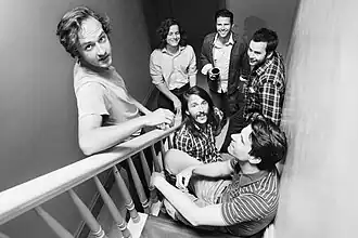 Holy Ghost Tent Revival (now known as Moves or Big Sound Harbor [1]) is an American horn-driven rock and roll band with blues and folk leanings. Formed in North Carolina in 2008,[2] current members are Stephen Murray, Dulci Ellenberger, Kevin Williams, Matt Martin, Ross Montsinger, Henry Widmer and Charlie Humphrey. They've released three studio albums, and the band tours frequently; in 2010 that included approximately 300 shows per year,[3] including festivals such as Shakori Hills Grassroots Festival, Bristol Rhythm & Roots, Floyd Fest and Wakarusa.[2] Paste Magazine described their style as "soul-inspired rock that maintains a rootsy sound, brightened by warm swells of horns and rich harmonies.”[2]