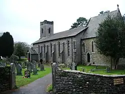 The original part of the church is constructed in rock-faced limestone, the chancel in rock-faced sandstone, both with ashlar dressings. Its plan consists of a six-bay nave with a south porch and a north vestry, a chancel with an organ loft to the north, and a west tower.[2] The tower is partly embraced in the nave, forming a baptistry; Hyde and Pevsner state that it is "undersized".[3] It is supported by diagonal buttresses, the bell openings are louvred with pointed heads and hoodmoulds, and the parapet is plain with raised angles. On the west side are two windows, one above the other, and a clock face. Along the sides of the nave are lancet windows alternating with buttresses, above which is a continuous hoodmould.[2] The chancel has a steeper roof than the nave, rising to a higher level.[3] Its east end has a coped gable surmounted by a cross, and contains three stepped lancet windows. On the south side of the chancel are three lancet windows and a doorway; on the north side is a single lancet to the east of the organ loft.[2]